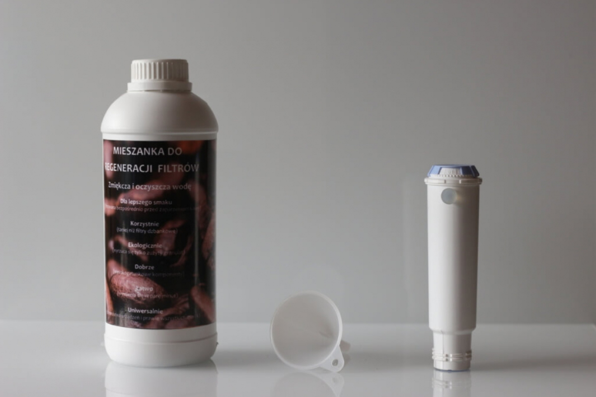 Nasz granulat do regeneracji filtrów to w 100% procentach produkt naturalny. Jest to środek organiczny, składający się ze specjalnej mieszanki różnych komponentów - wysokiej jakości żywic oraz aktywnych cząsteczek węgla. Żywica powoduje wymianę jonową, która zmiękcza wodę, a aktywny węgiel sprawia, że zostaje ona oczyszczona. Proporcje zostały dobrane w taki sposób, aby polepszyć jakość wody i kawy oraz przedłużyć żywotność ekspresu.